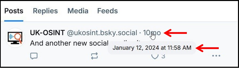 Put your cursor over the area showing how long ago the post was sent, and the exact date and time of post will be shown below.