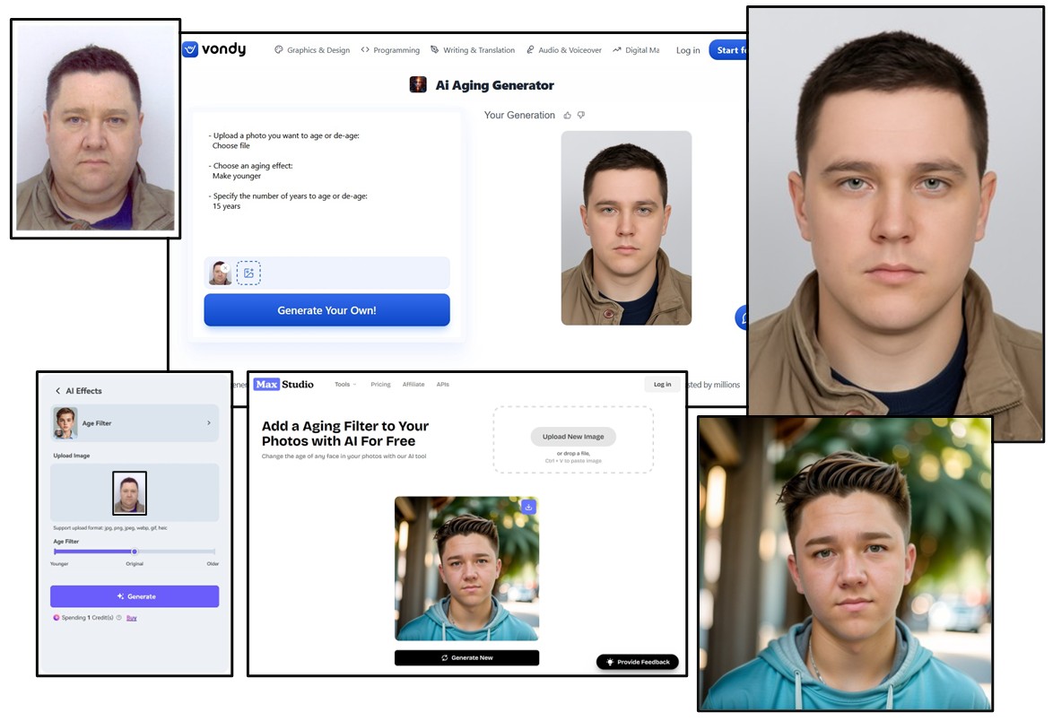 There may be times when your Fake Profile is that of a much younger person, or even a much older person, than you are, so there are a number of sites, such as Vondy and Max Studio, which are both linked to above, which allow you to upload an image and they will quickly create an AI Generate Image based upon it, which alters your appearance to that of child, teenager, young adult, adult or even a pensioner, which may prove useful.