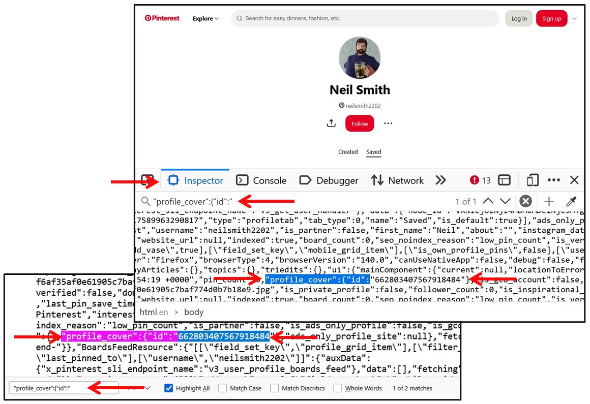 Which means, that in some cases you can reverse-engineer the account holders email address, by putting their Pinterest Username / Account Name in front of @gmail.com etc, which can then be researched to see if it is linked to this account and any others, using some of the email checking sites linked under the Email Address Searches heading, on the Email page of our website, like OSINT Industries, Epieos & Lol Archiver.