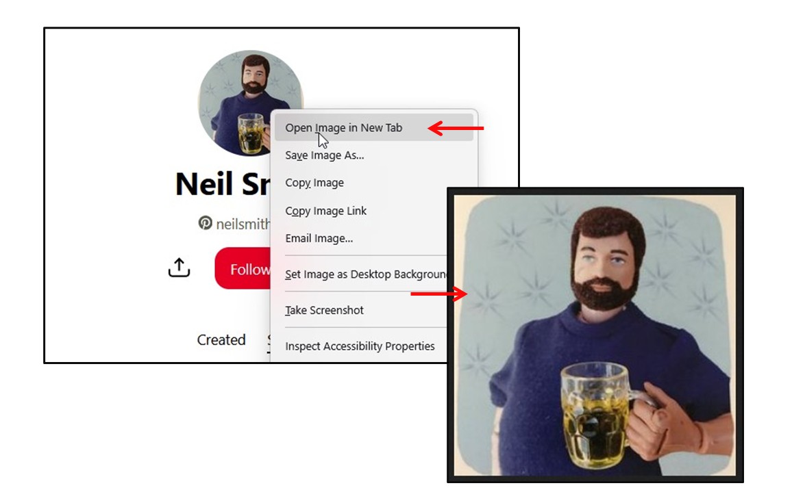 From the account holders' page, Right Click on the Profile image and then select Open Image In New Tab to view and obtain a larger version of it.