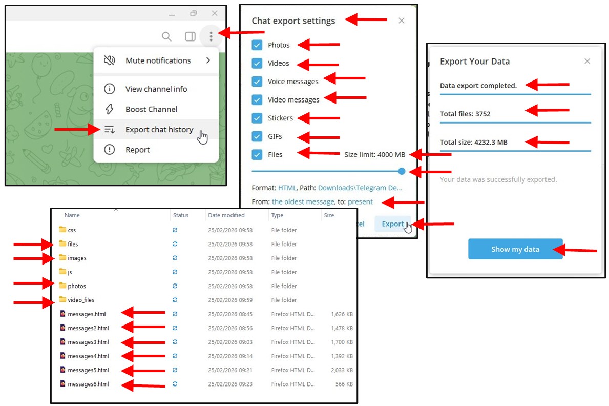 To export a copy of a Telegram Chanel, you must use the Telegram Desktop App, not the Smartphone App. Then open the Telegram Desktop App and go to the channel you want to export and;