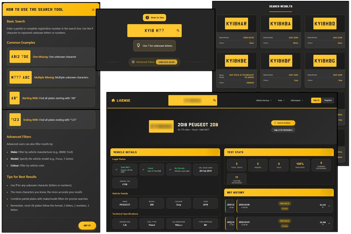 There may be times when you do not have the full registration number of a motor vehicle of interest, this is where a site such as partialnumberplate or lisenseuk can be useful, as they allow you to search a partial UK vehicle registration number. If you replace any unknown / missing characters with a ?, then it will return a list of possible registration numbers for vehicles, along with the vehicles make, model & colour.