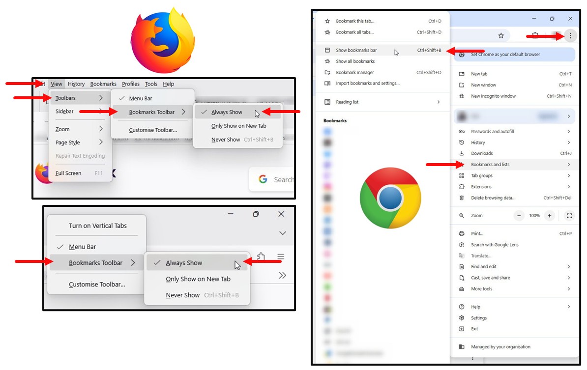 We are always happy to recommend the really useful MyOSINT.Training Bookmarklets, however we are aware that some people struggle with locating and turning their Browsers Bookmark Toolbar on, so we hope the below will help some people new to OSINT.