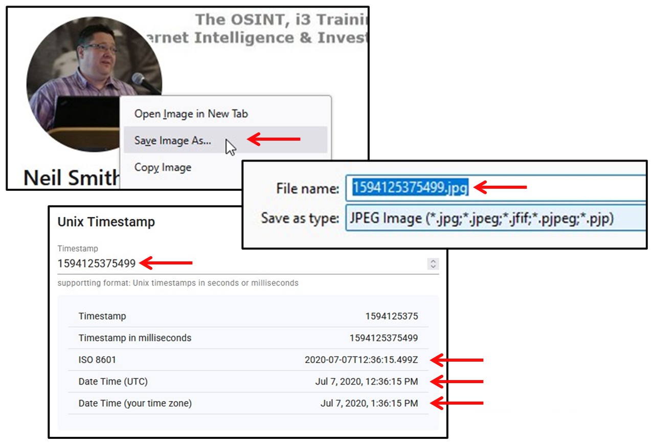 Then copy the file name and paste the numbers from the file name, so minus the .jpg, into a UNIX Converter, many of which are listed on the Time Zone & Time Converter Related Sites & Links page of our website, which will give you the exact date and time (in GMT) of when the Profile Image was uploaded.
